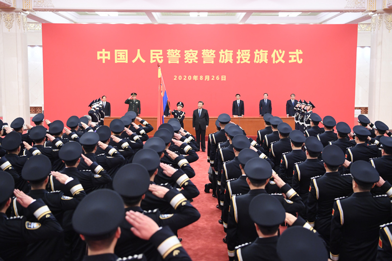 8月26日,中国人民警察警旗授旗仪式在人民大会堂举行。中共中央总书记、国家主席、中央军委主席习近平向中国人民警察队伍授旗并致训词。新华社记者 张领 摄