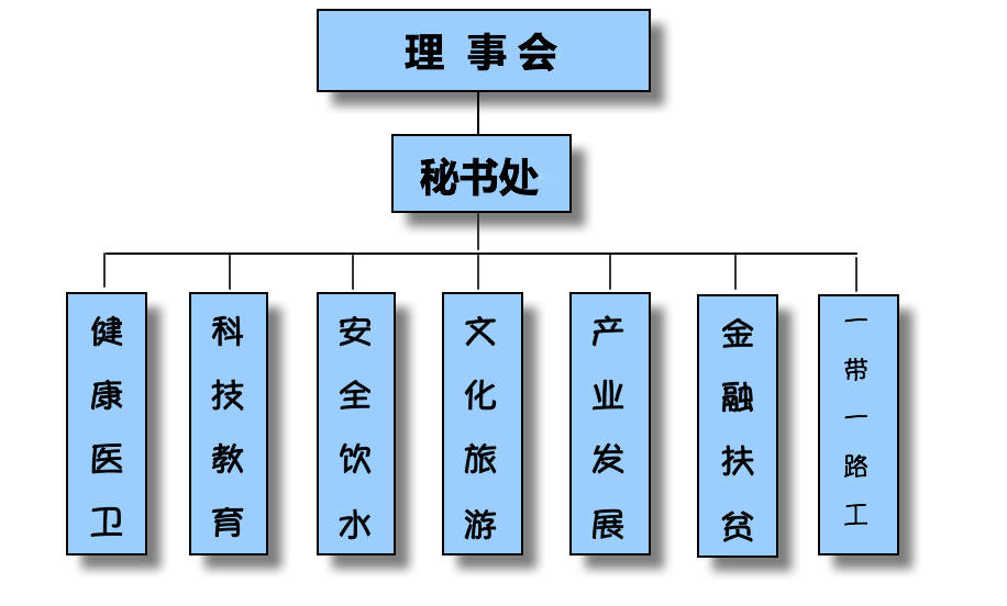 秘书处下设健康医卫处、科技教育处、安全饮水处、文化旅游处、产业发展处、金融扶贫处、一带一路工作组等负责开展相关工作。