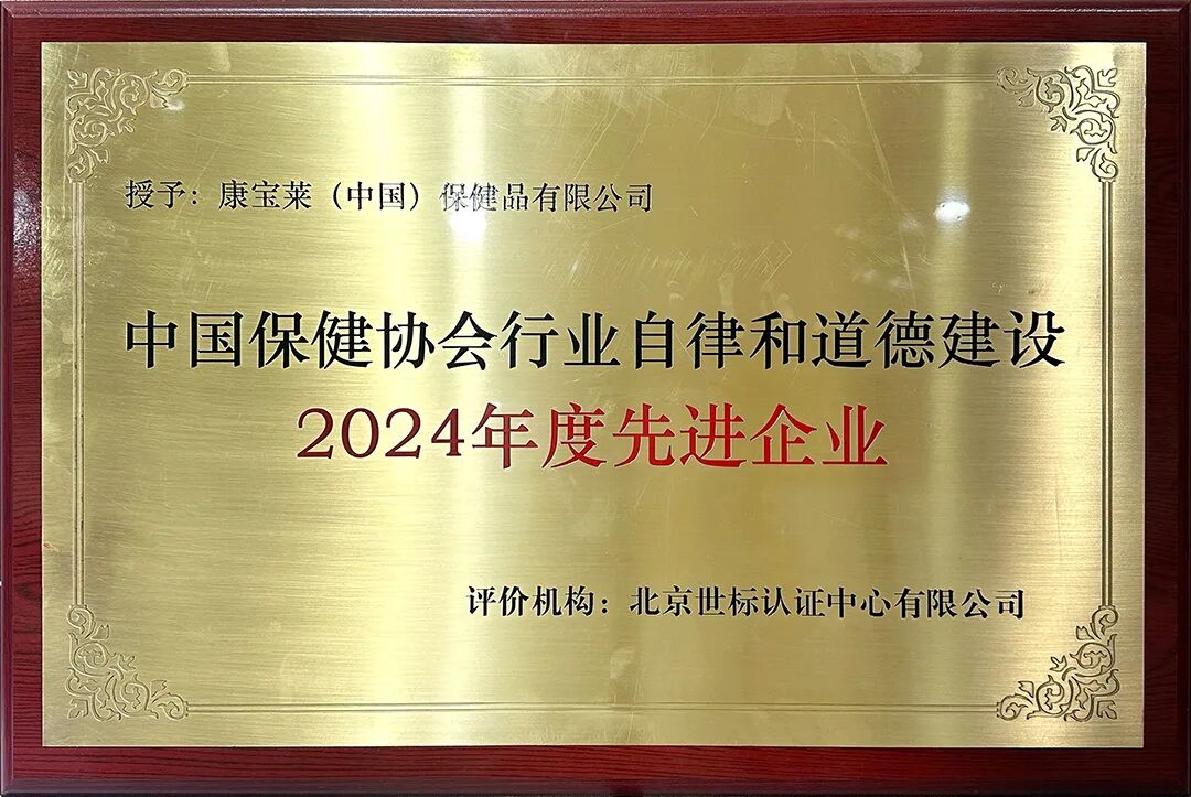 自2024年2月起,中国保健协会开展了“寻典型、推先进、树榜样”之行业自律和道德建设先进企业评价活动,旨在进一步加强行业自律和道德建设,提升企业的社会责任感和公众形象,树立行业典范。该活动经企业自主申请、报名审核、现场评价等程序,按照国家法律法规相关规定,由第三方机构开展评价工作。共有包括康宝莱公司在内的12家企业通过评价,获得行业自律和道德建设先进企业铜牌。